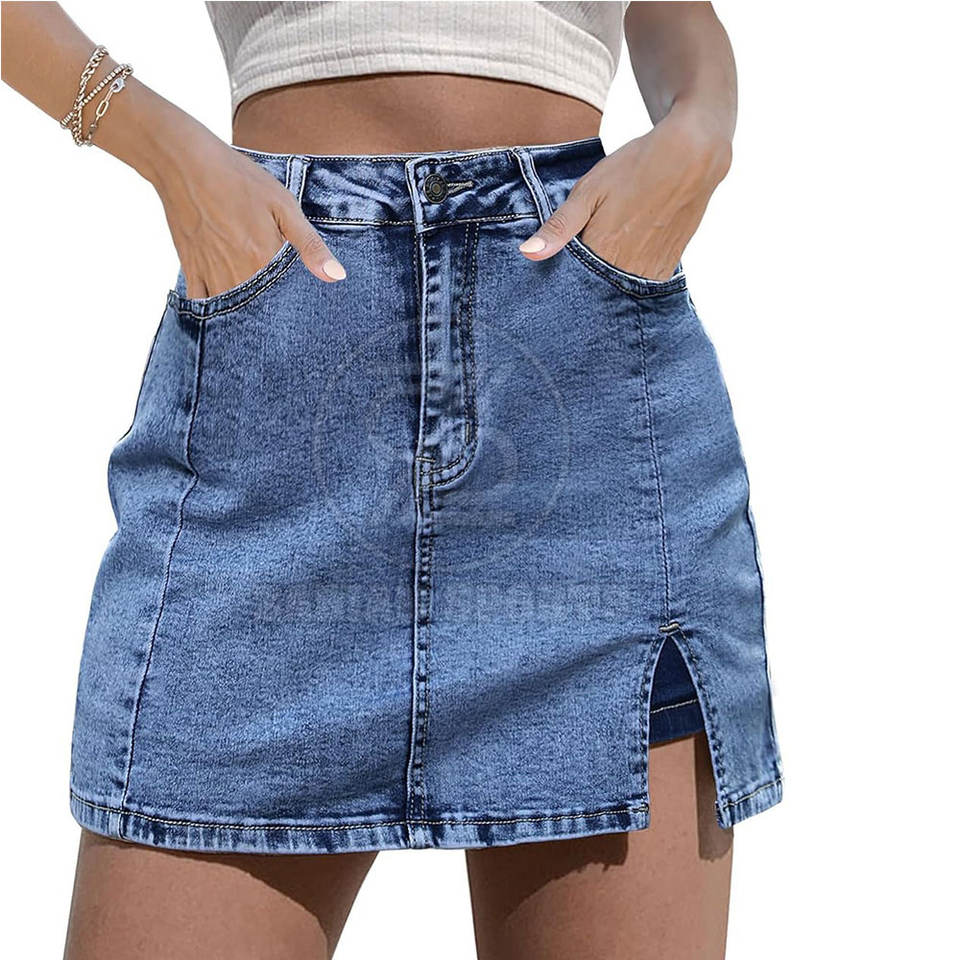 ออกแบบโลโก้ของคุณเอง กระโปรงยีนส์ผู้หญิงขายดี ผ้าฝ้าย แห้งเร็ว ระบายอากาศได้ดี