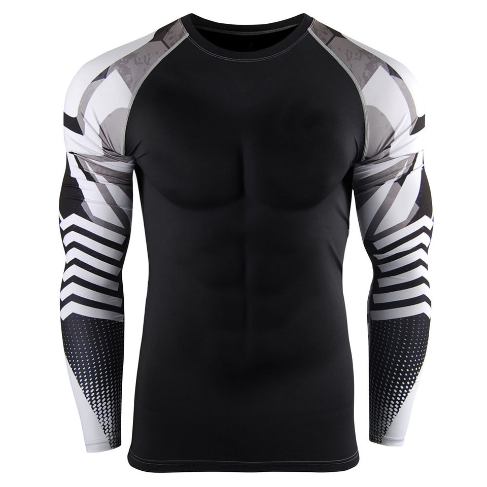 เสื้อแรชการ์ดคอกลมสำหรับผู้ชายเสื้อผื่นคันแบบเรียบแขนยาวทรงสลิมฟิตออกแบบโลโก้ได้ตามต้องการ