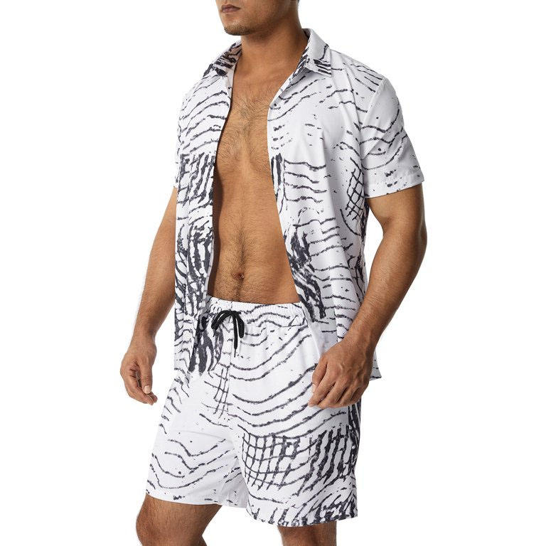 Men's Casual Hawaiian Summer Sets 100% Satin Printed Breathable Easy Wear Street Trending Short Customizable Design Plus Size