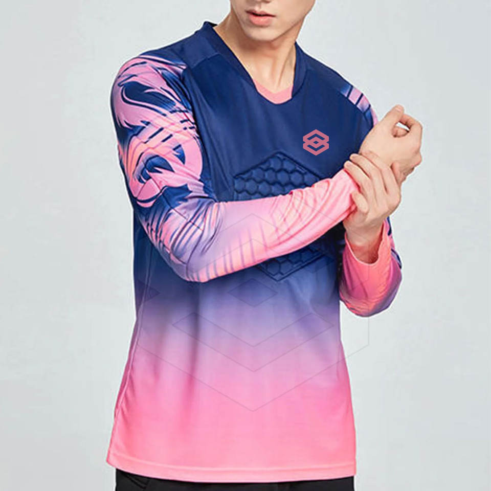 ออกแบบเสื้อผู้รักษาประตูฟุตบอลแบบซับลิเมชั่นของคุณเอง เสื้อทีมคุณภาพสูง ผลิตจากโพลีเอสเตอร์ 100% รับสั่งทำจำนวนมาก ผลิตในปากีสถาน