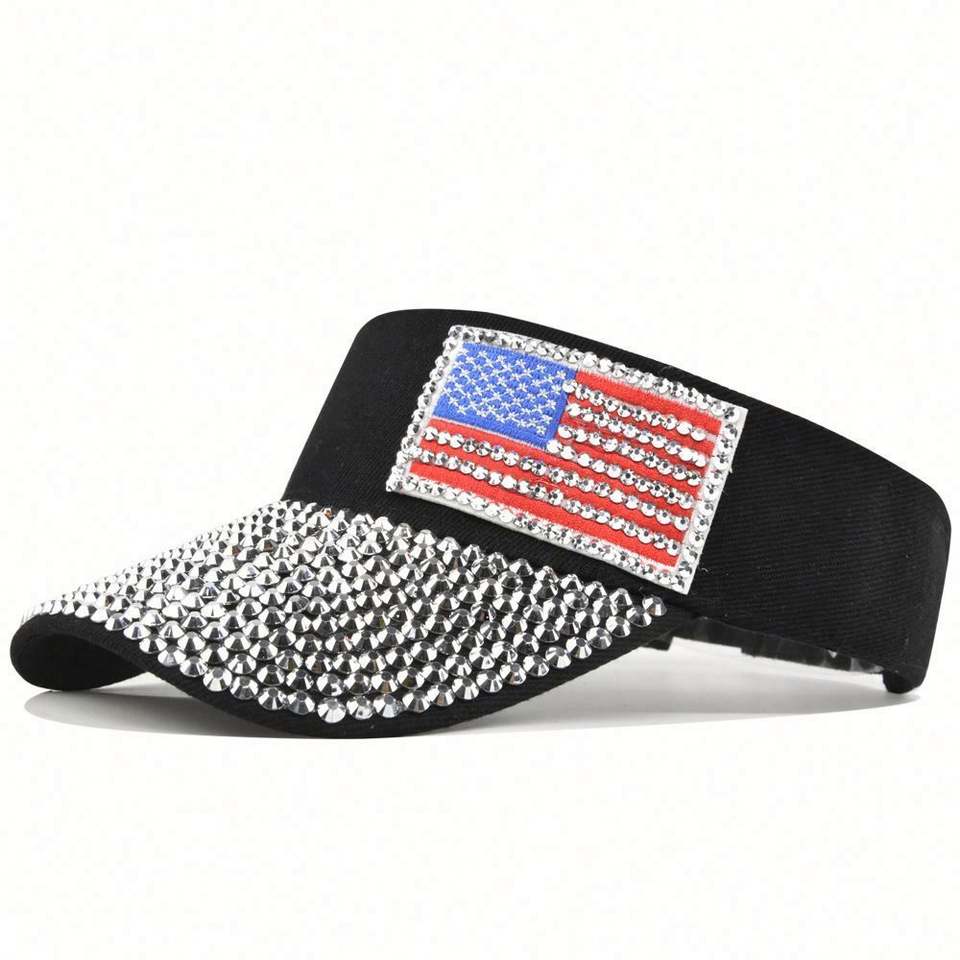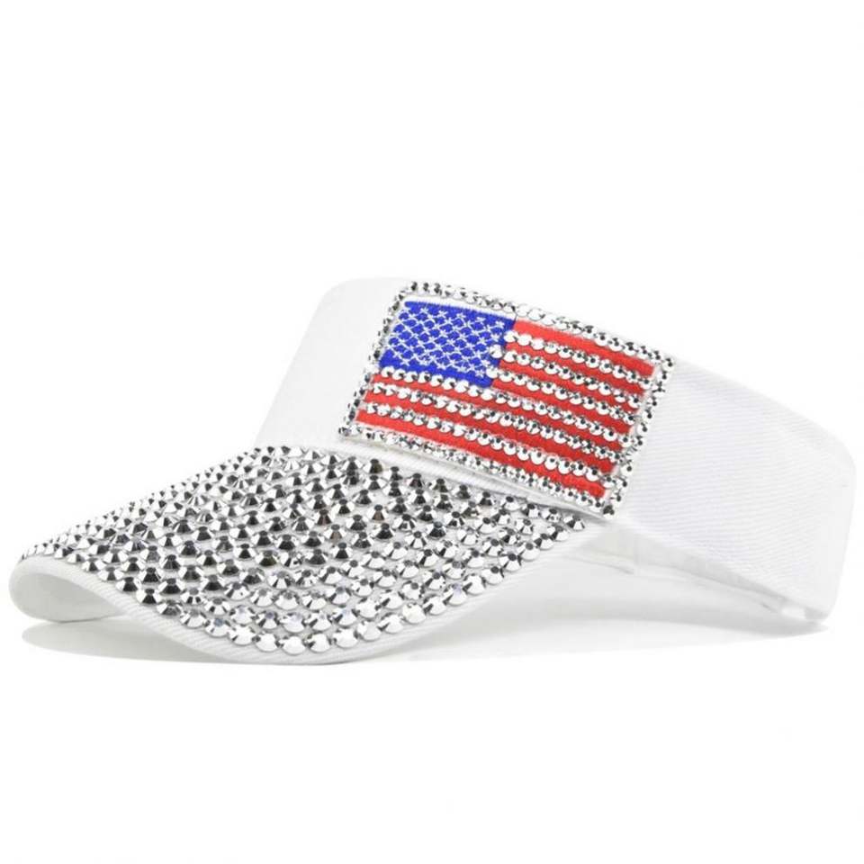 ออกแบบหมวกกันแดดคริสตัลลายธงชาติอเมริกาของคุณเอง หมวกกันแดดแบบสปอร์ตประดับด้วยเพชร