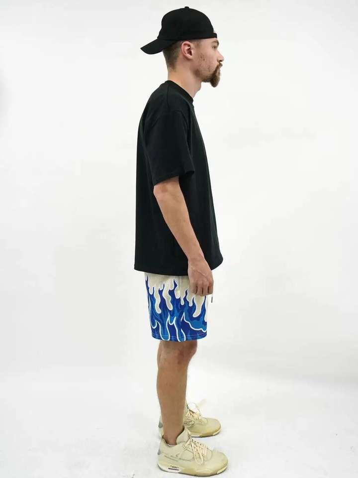 กางเกงขาสั้นลายไฟคู่สไตล์วินเทจของผู้ชายดีไซน์ของคุณเองพิมพ์ลายโพลีเอสเตอร์แบบวินเทจ