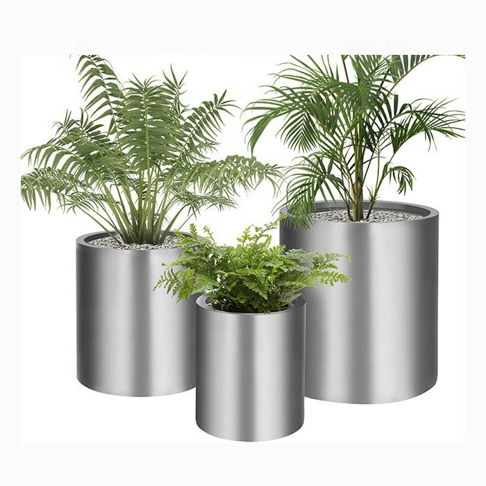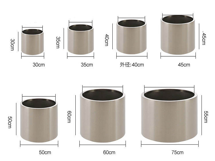 การออกแบบและทำให้ข้อกำหนดต่างๆของเงินสแตนเลสโลหะรอบทรงกระบอกสวนกระถางดอกไม้กลางแจ้งกล่องดอกไม้