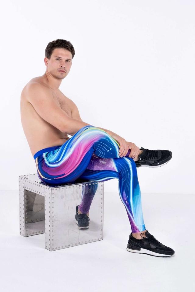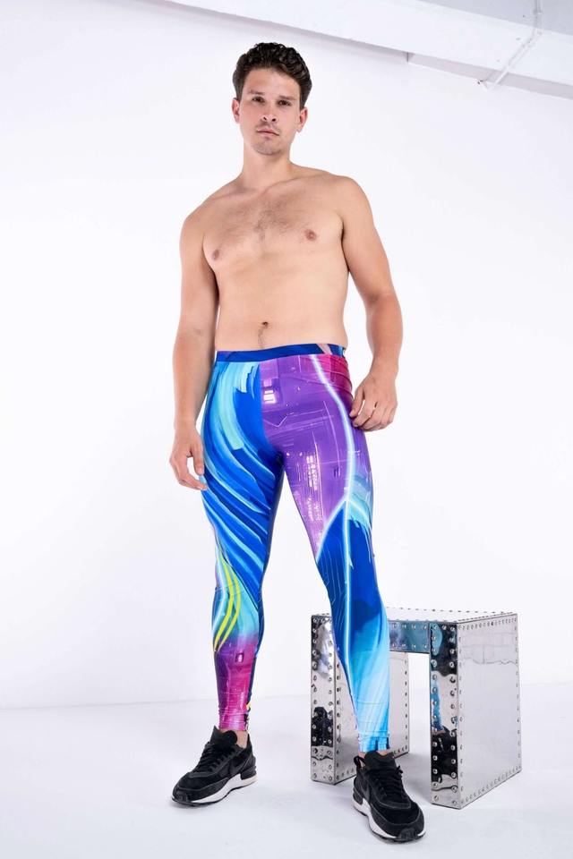 กางเกงเลกกิ้งผู้ชาย สีฟ้า ลายพิมพ์ Future