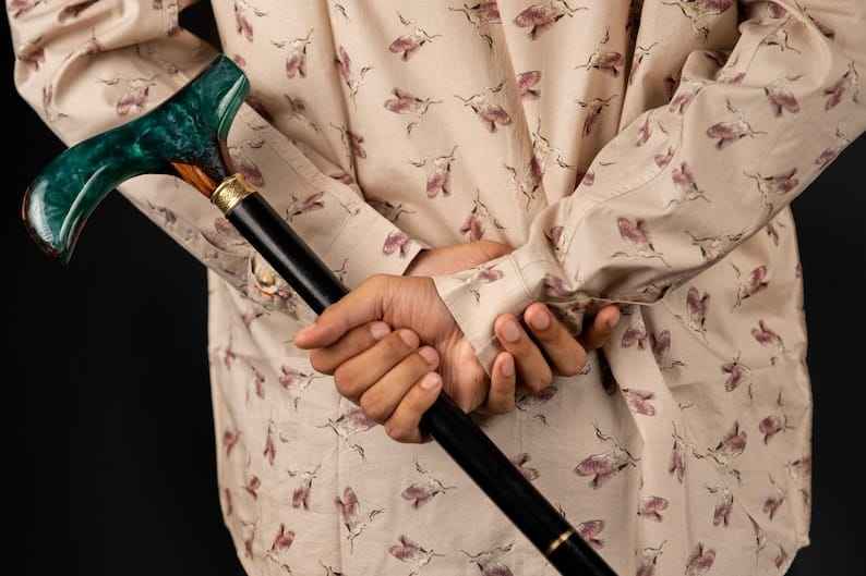 ออกแบบมาเพื่อการเคลื่อนไหวที่สะดวกสบายในชีวิตประจำวัน ไม้เท้าทำจากเรซินและไม้ ให้การรองรับที่แข็งแรง ดูหรูหรา