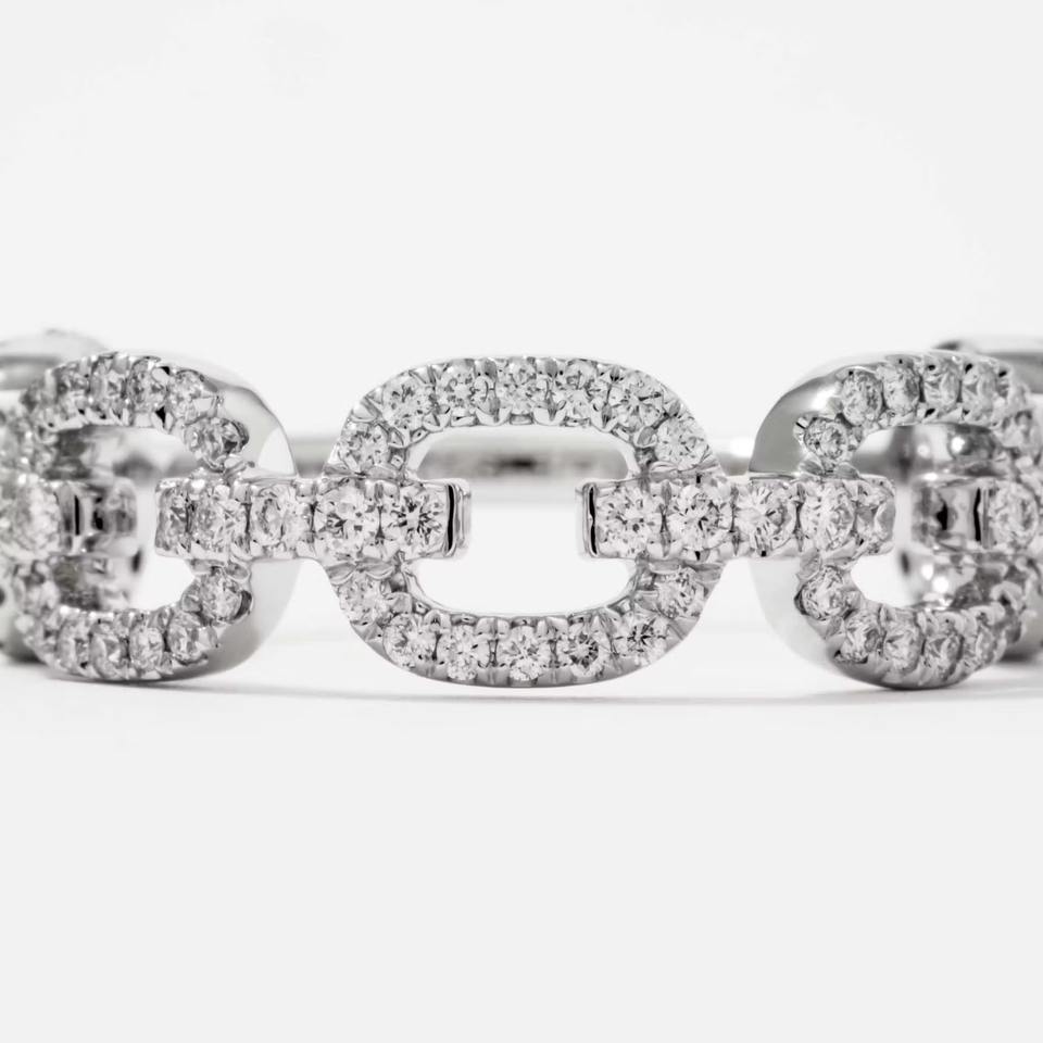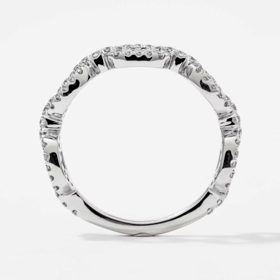 แหวนหมั้นเพชรแล็บโกรว์ทรงเหลี่ยม 0.56 กะรัต ดีไซน์เนอร์ 14K ทองคำขาว ประดับเพชรแบบพาเว่ ครึ่งวงนิรันดร์ ลวดลายเชื่อมต่อกัน ได้รับการรับรองจาก IGI