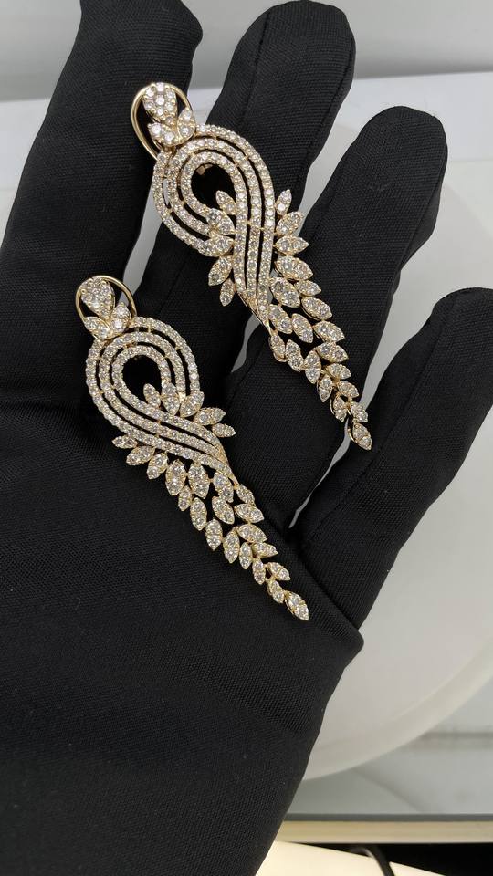 ต่างหูออกแบบ14Kt สีเหลืองทองที่มีความบริสุทธิ์ VS SI เพชรแท้ที่ไม่ซ้ำกันสำหรับใส่ในโอกาสพิเศษ
