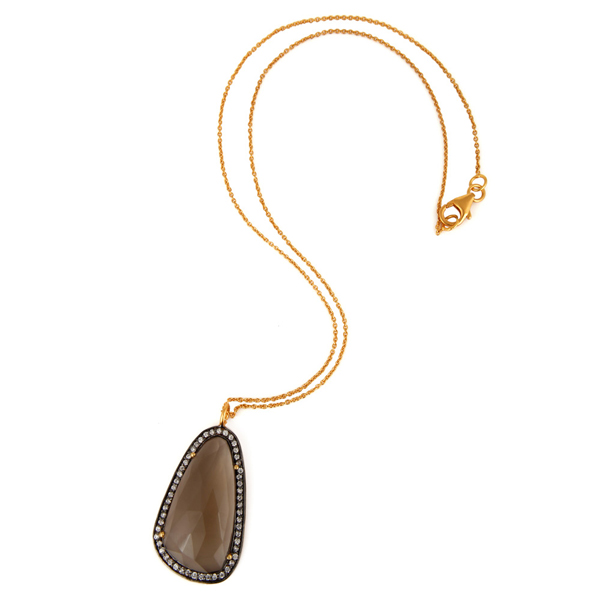 สร้อยคอเงินแท้ 925 ชุบทอง 18k ดีไซน์เนอร์ ประดับเพชรซิคอนและควอตซ์สโมคกี้ ขายส่งเครื่องประดับ