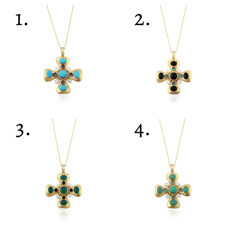 สร้อยคอจี้รูปกางเขนทองเหลืองดีไซน์วินเทจ ชุบทอง 18k ประดับด้วยเทอร์ควอยซ์สีม่วงและเพชร CZ พร้อมตัวล็อกแบบก้ามปูและสายโซ่แบบเคเบิล
