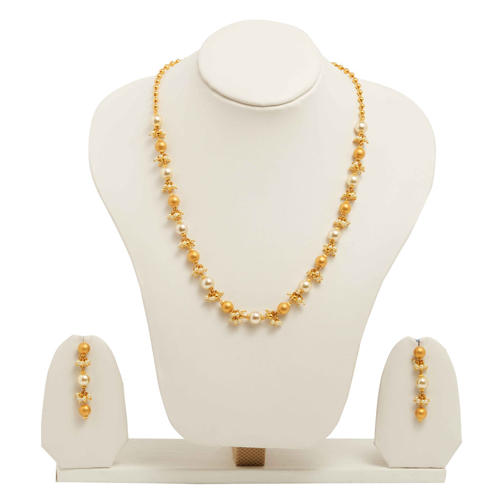 ชุดต่างหูสร้อยคอไข่มุกลายดอกไม้สีทอง22K ดีไซน์เนอร์ทำมือเครื่องประดับน้ำหนักเบาสำหรับผู้หญิงชุดเครื่องประดับงานปาร์ตี้และของขวัญ