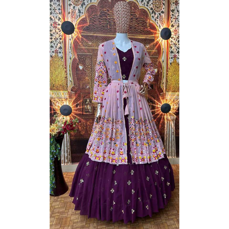 ชุดปาร์ตี้2XL ดีไซเนอร์สวมกับ lehenga choli Koti ที่สวยงาม