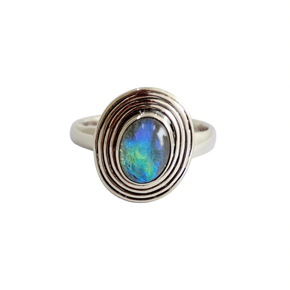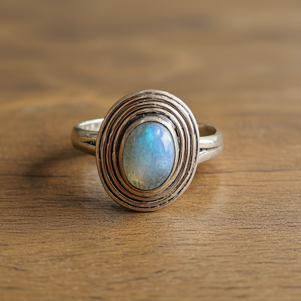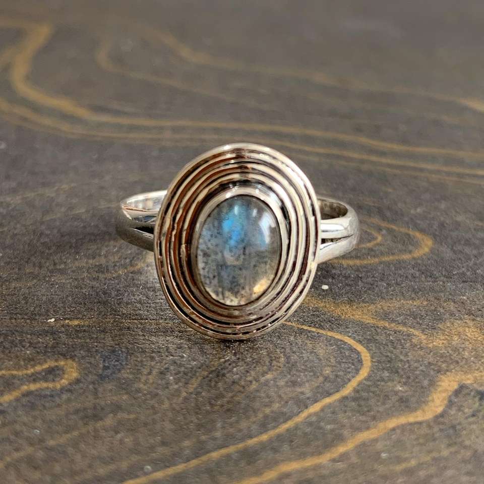 แหวนแฟชั่นดีไซน์เนอร์ 3.2 กรัม ประดับด้วยหินลาบราโดไรต์