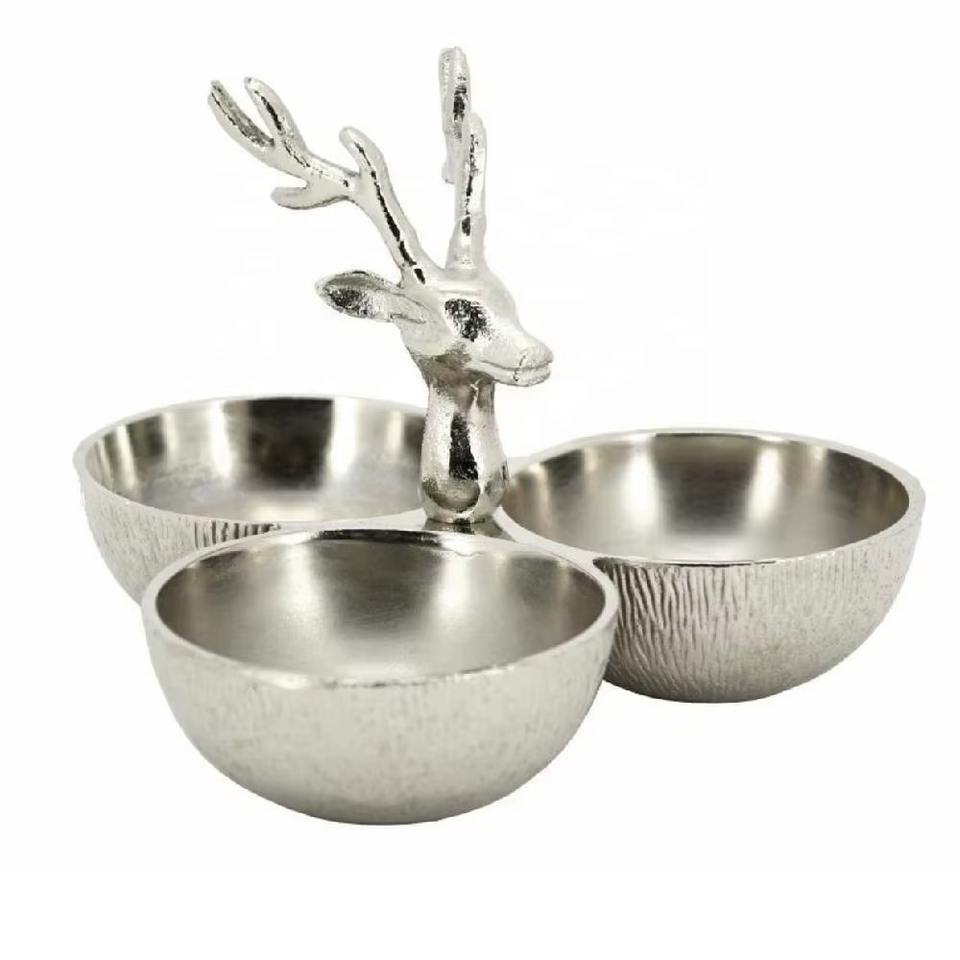 ชุดชามตกแต่งลายดอกไม้ 3 in 1 ดีไซน์หรูหรา พร้อมหูจับสีทอง เหมาะสำหรับตกแต่งห้องนั่งเล่น โต๊ะคอนโซล และจัดแสดง ผลิตจากอินเดีย