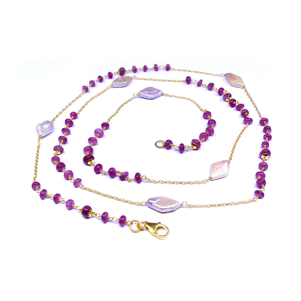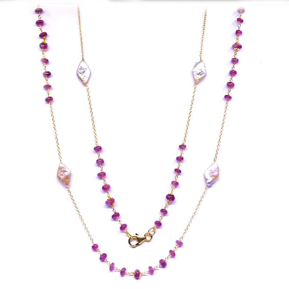 สร้อยคอเงินแท้ 925 ดีไซน์เนอร์ ประดับลูกปัดและจี้รูปทรงคลาสสิก ประดับพลอยทับทิมและมุก ชุบทอง เหมาะสำหรับผู้หญิง สวมใส่ได้ทุกวัน