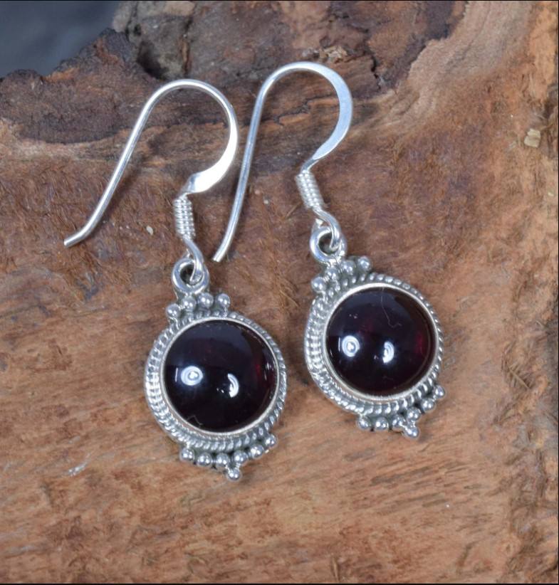 Product Name:Natural Garnet Gemstone Silver Earrings