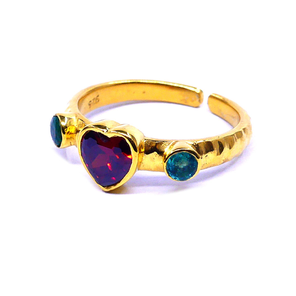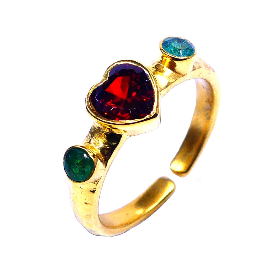 แหวนแฟชั่นปรับได้รูปหัวใจโกเมนชุบทองและอัญมณีสีเงินสเตอร์ลิง925ดีไซเนอร์