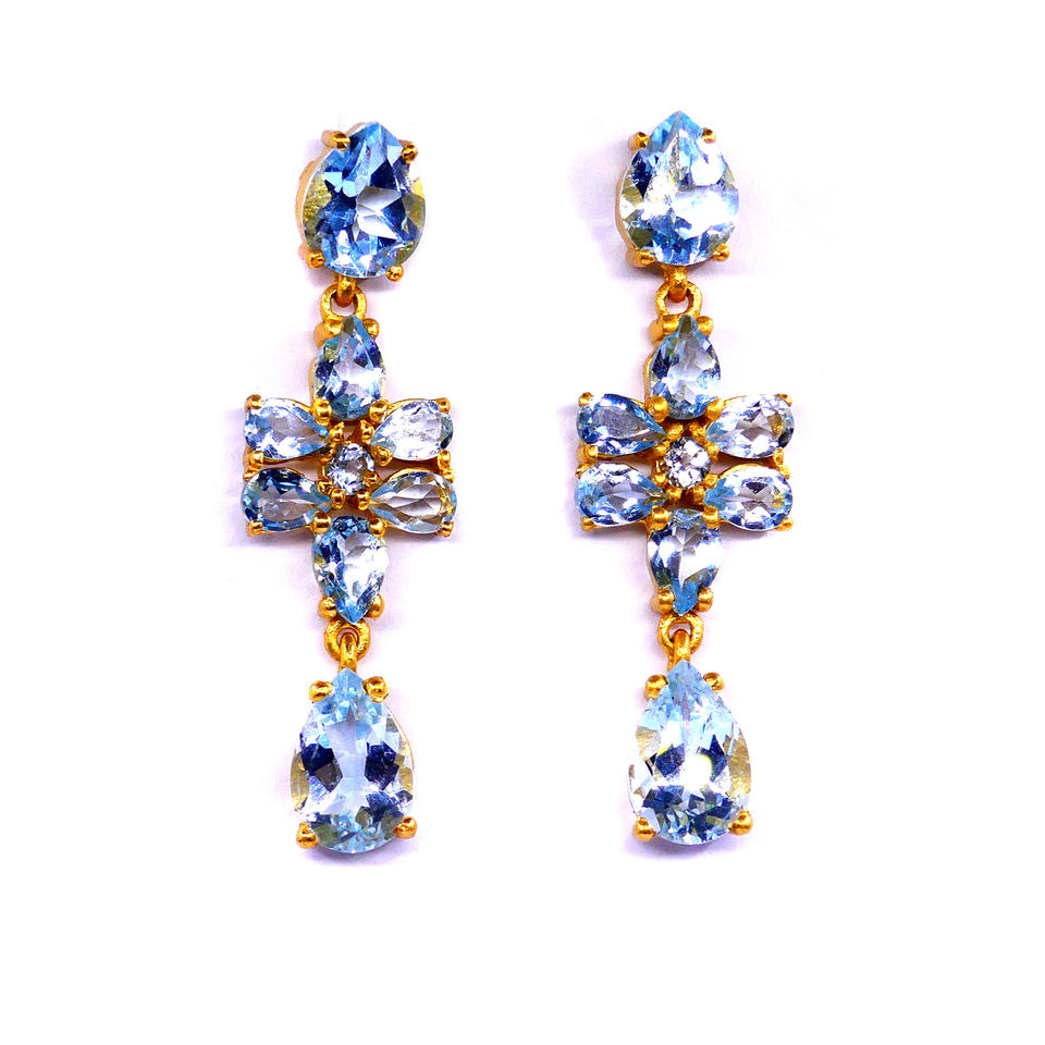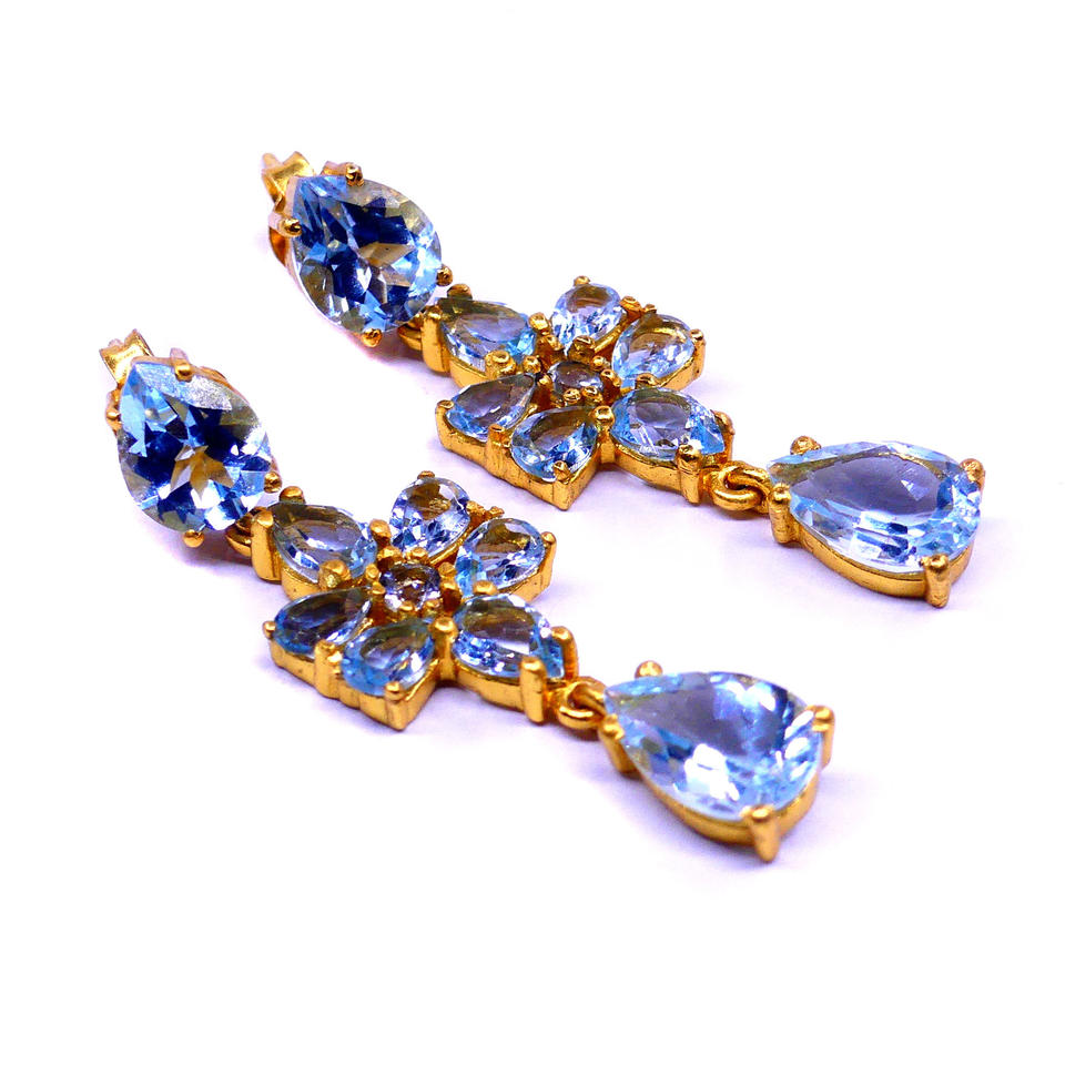 ต่างหูของผู้หญิงสำหรับงานแต่งงานแบบดั้งเดิมอัญมณีบุษราคัมชุบทองเงินแท้925ดีไซน์เนอร์
