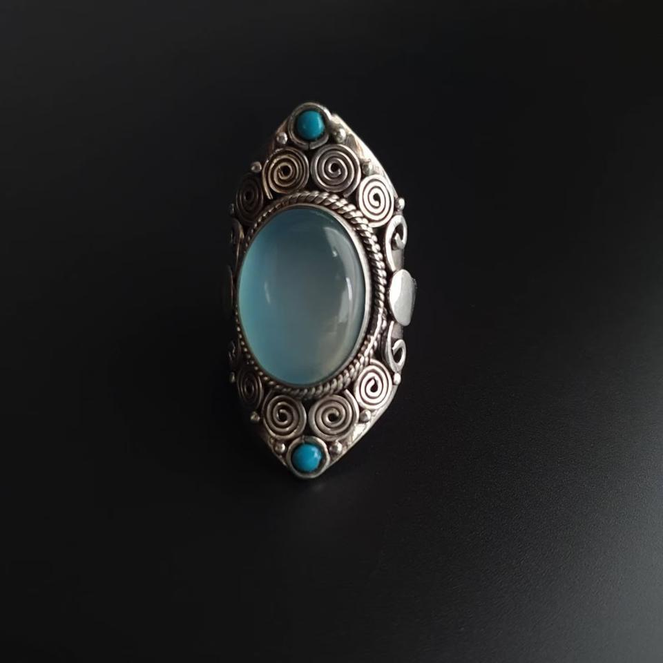 แหวนเจ้าสาวสีฟ้าสุดหรูดีไซน์เนอร์925เงินแท้ของขวัญแต่งงานทำมือสำหรับผู้หญิงในวันวาเลนไทน์