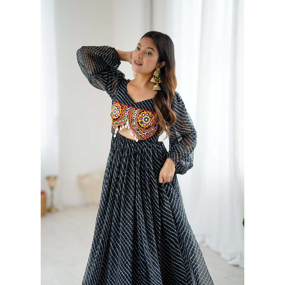 ชุดเดรสทรงเอไลน์ผ้าชีฟองพิมพ์ลายดิจิทัลพร้อมงานเย็บโซ่ ทรงเอ็มไพร์ไซส์ XL