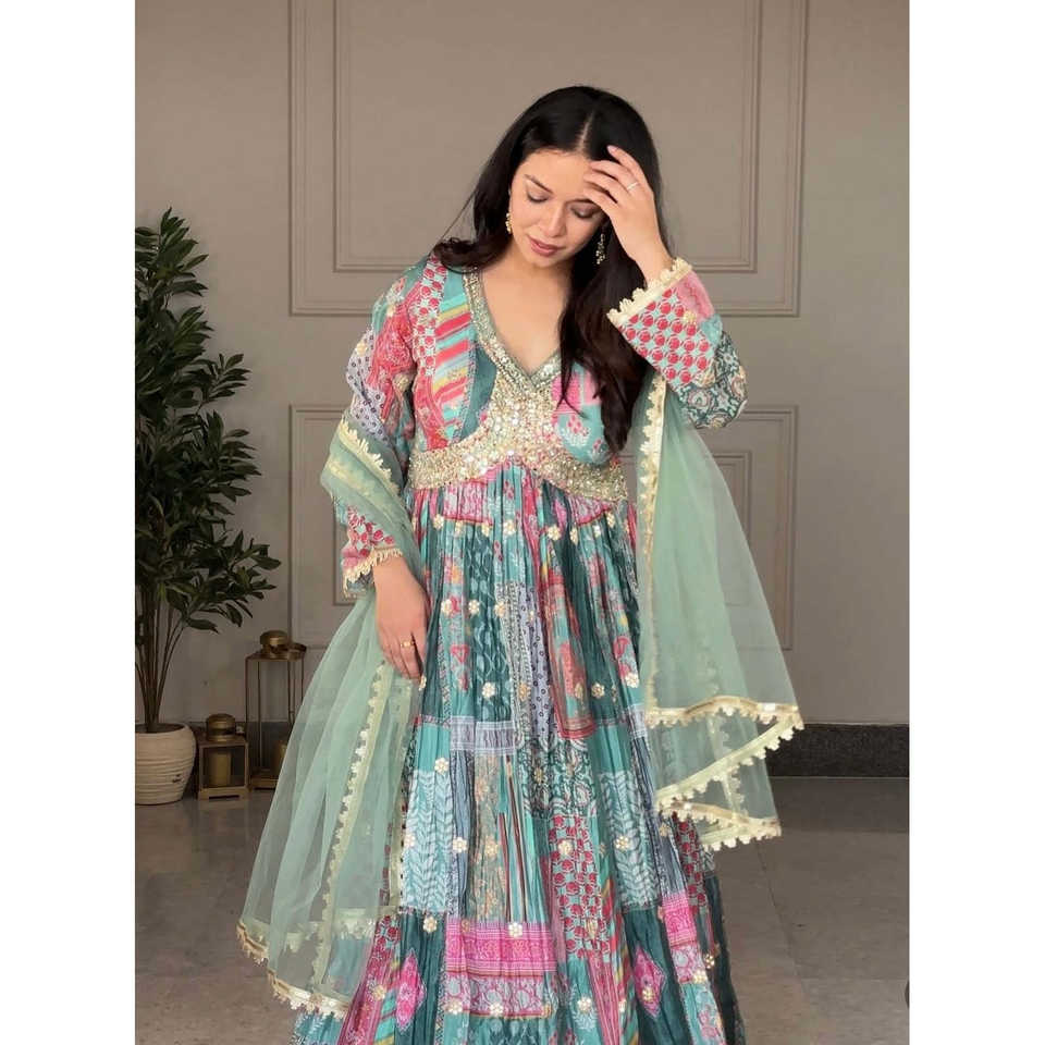 Aliya-Cut ชุดราตรีหรูหราพร้อม pent and dupatta สำหรับงานปาร์ตี้ตอนเย็นดีไซน์เนอร์