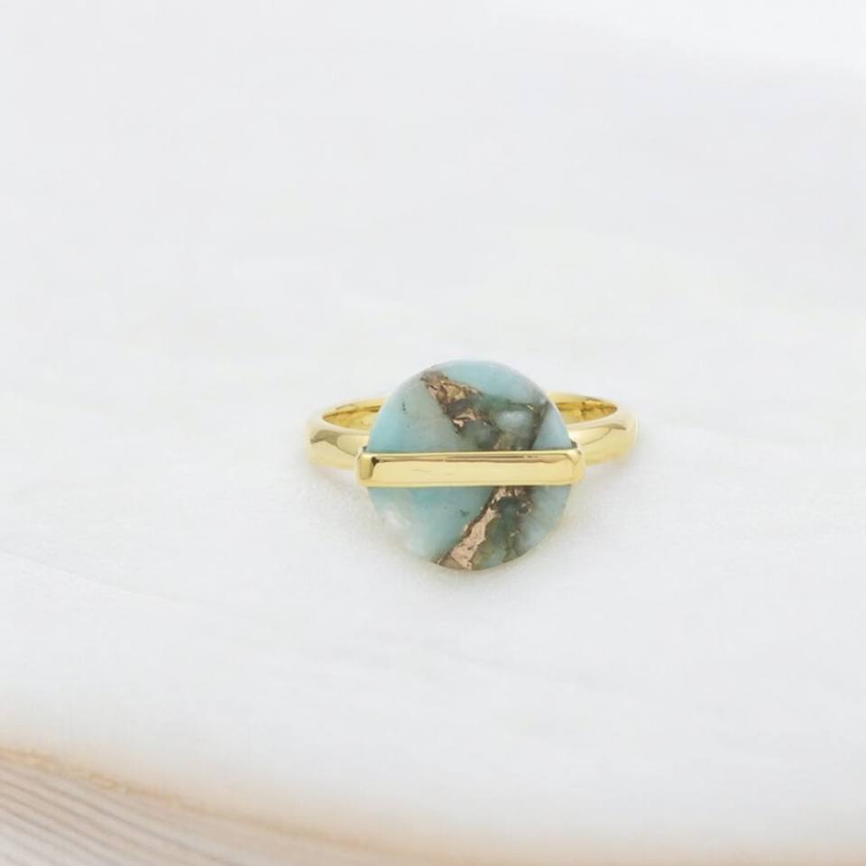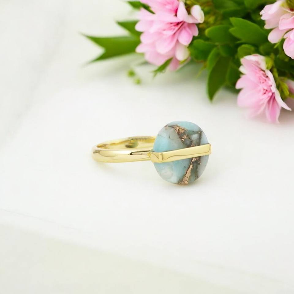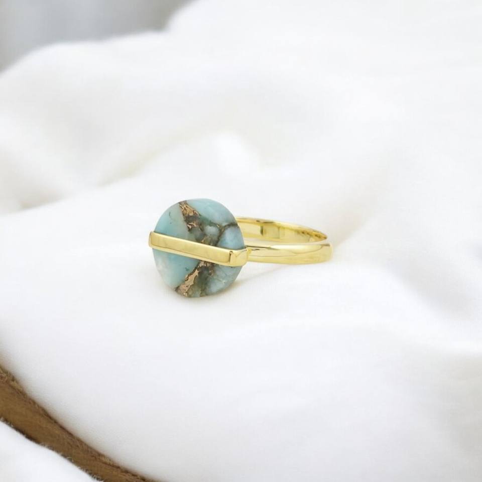 แหวนเงินสเตอร์ลิง925ดีไซน์เนอร์ทำด้วยมือพลอยอเมซอนไนต์ธรรมชาติชุบทองการตั้งค่าหนามเตยเครื่องประดับสำหรับงานแต่งงาน