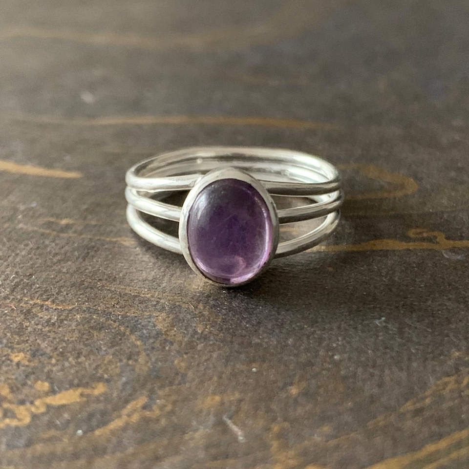 แหวนดีไซน์เนอร์ประดับอเมทิสต์แบบคลัสเตอร์ น้ำหนัก 3.2 กรัม แหวนแฟชั่นชุบทองและเงินสำหรับเป็นของขวัญ ประดับแบบฝังขอบ