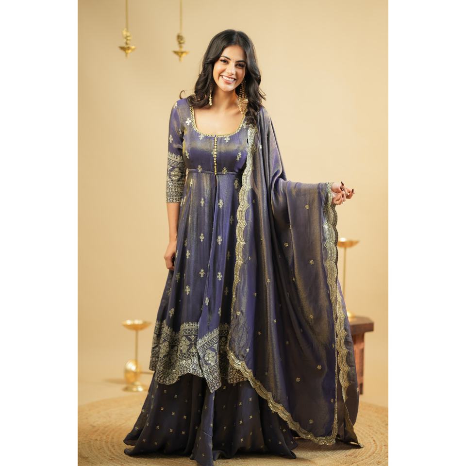 ชุด anarkali ดีไซเนอร์-lehenga และ dupatta ชุดปาร์ตี้มุสลิมแบบดั้งเดิม