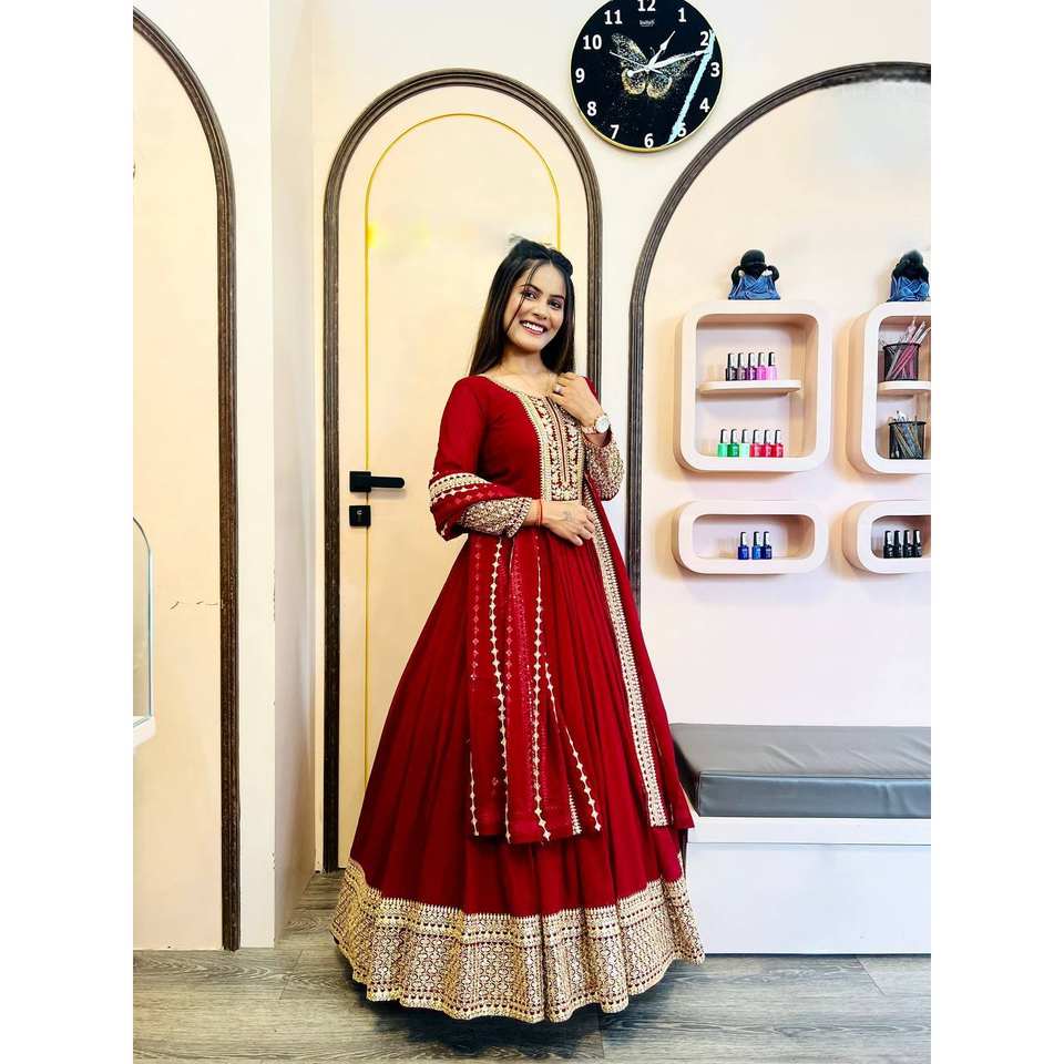 ชุดเดรสยาว anarkali ดีไซเนอร์พร้อมด้วยชุดเดรสทำงาน dupatta ที่สวยงามสำหรับงานปาร์ตี้