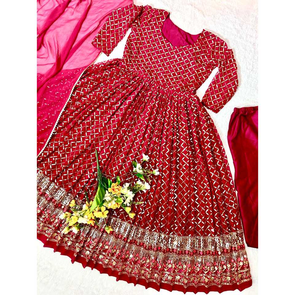 ชุด anarkali ดีไซเนอร์พร้อม pent and dupatta สำหรับงานปาร์ตี้เสื้อผ้ามุสลิมแบบดั้งเดิมและเครื่องประดับ