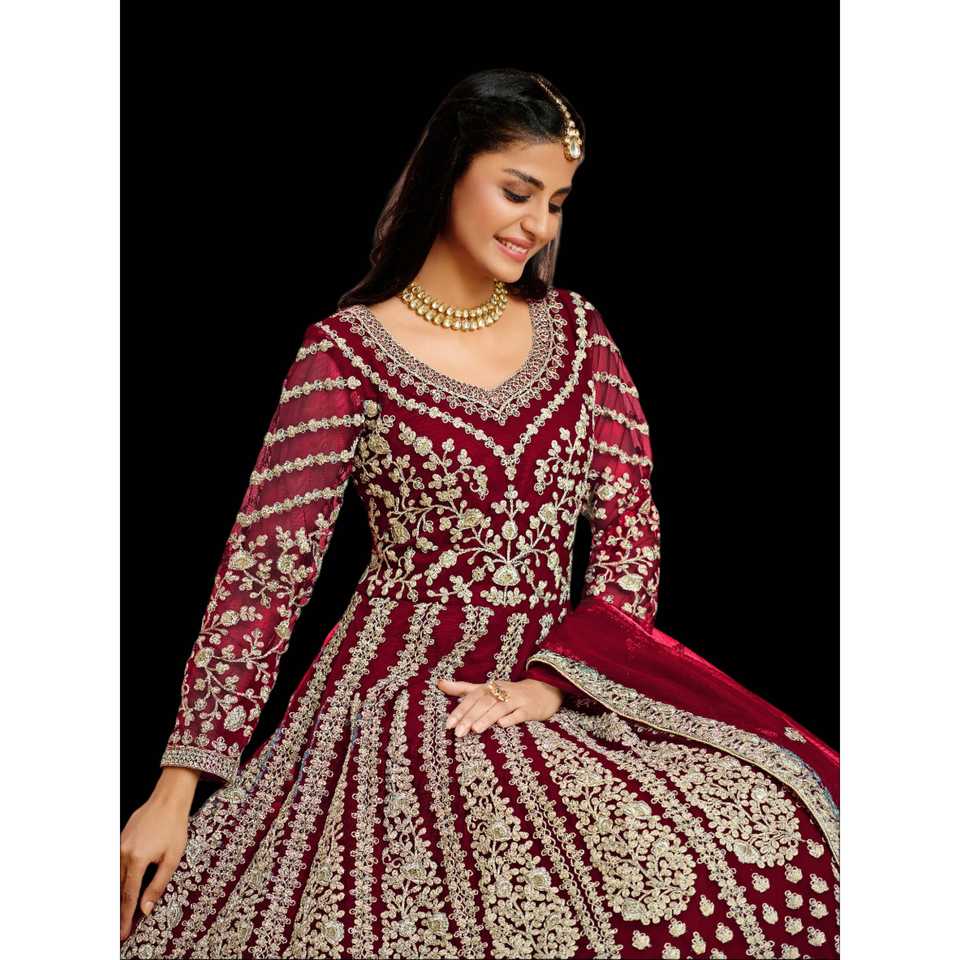 ชุดเดรสอานาร์กาลีดีไซเนอร์พร้อมกางเกงและผ้าคลุมไหล่สำหรับงานปาร์ตี้-ชุดราตรี