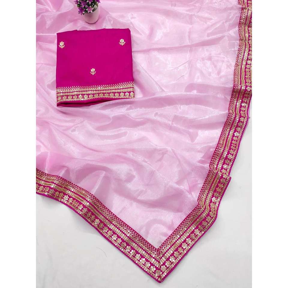 ชุดส่าหรีสีชมพูสำหรับเด็กพร้อมด้วยเสื้อที่ไม่มีการเย็บปักลายลูกไม้ชุดเสื้อผ้าแบบไม่มีตะเข็บ