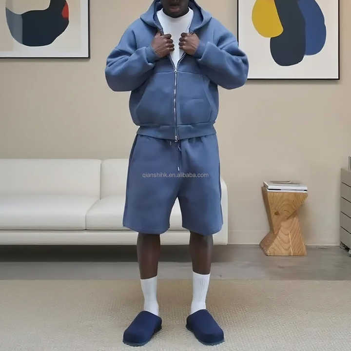 กางเกงขาสั้นผ้าฝ้ายทรงถุงดีไซน์เนอร์ชุดมีฮู้ดแบบรูดซิปชุดวอร์มแบบกำหนดเองชุดเสื้อผ้าขนแกะแบบยูนิเซ็กส์ชุดวอร์มเปล่าสำหรับผู้ชาย
