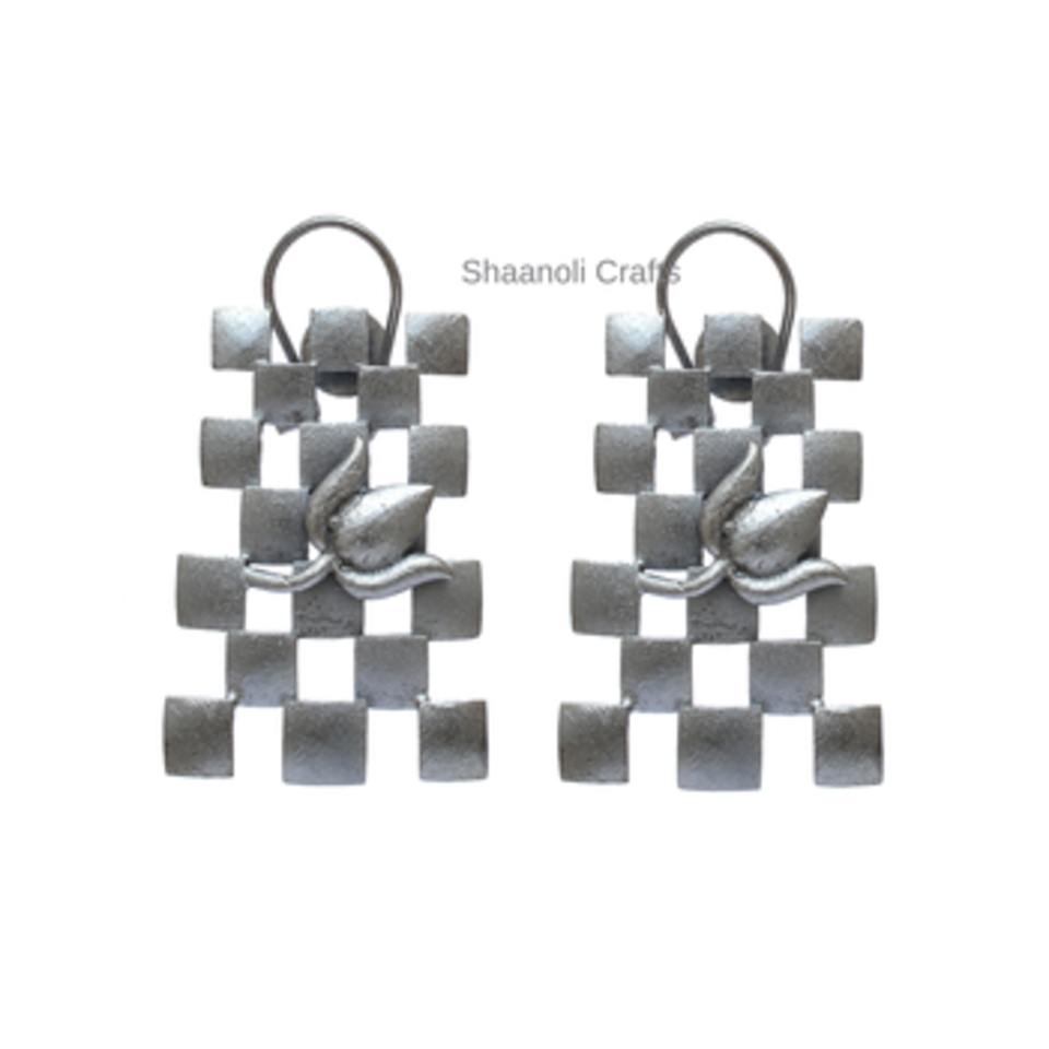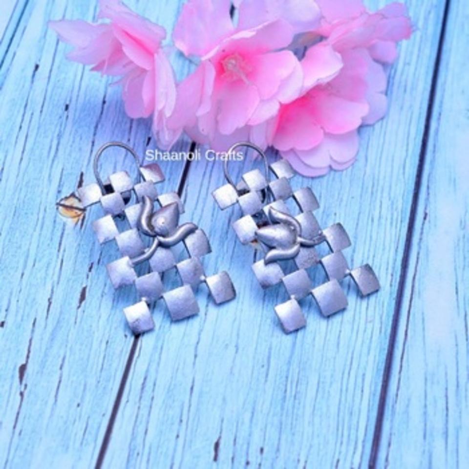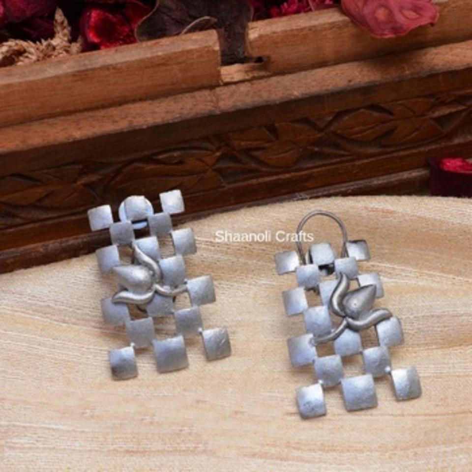 ต่างหูดีไซน์สวยงาม ลายบล็อก ต่างหูดีไซน์เนอร์ ชุบเงิน ทำจากทองเหลือง สำหรับผู้หญิง สวมใส่ในงานแต่งงาน งานปาร์ตี้