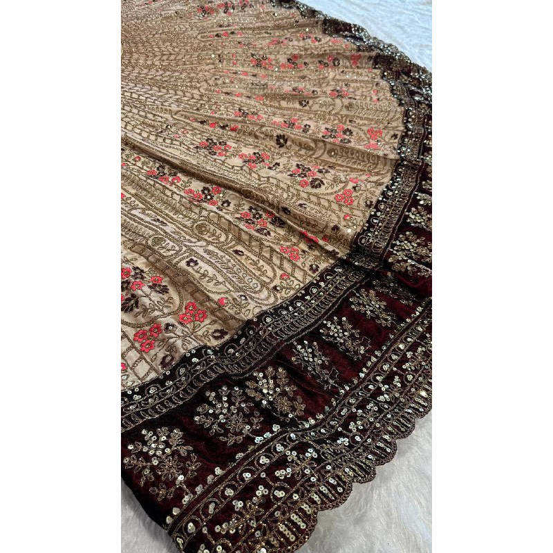 ชุดเลเฮนกาโชลีสวยงาม ดีไซน์เนอร์ออกแบบ ประดับด้วยงานปักเลื่อมและด้าย เสื้อผ้าอินเดียและปากีสถาน
