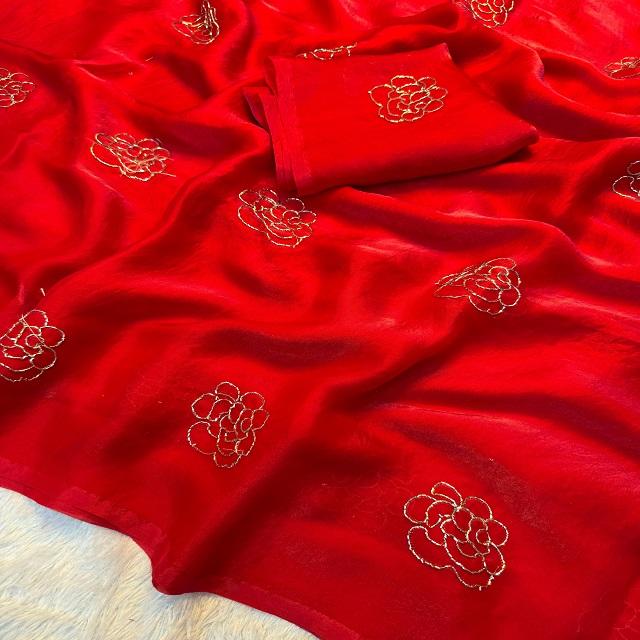 ผ้าไหมซาหรีดีไซน์สวยงาม งานฝีมือประณีต สำหรับผู้หญิง ใส่ในงานแต่งงานและงานปาร์ตี้ ผลิตในอินเดีย มีสินค้าพร้อมส่ง