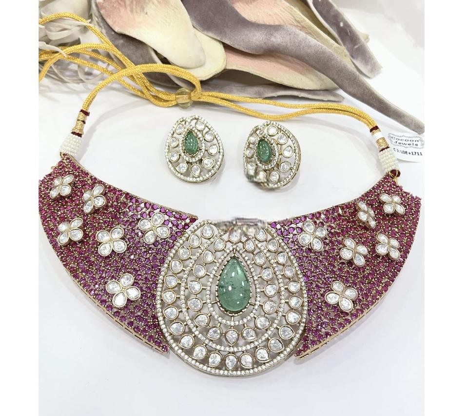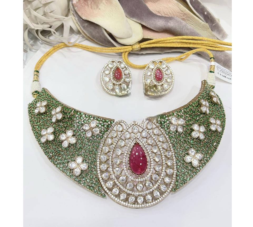ชุดสร้อยคอพร้อมต่างหูทองชุบคุณภาพดีไซเนอร์ ประดับเพชรโมอิสซาไนต์ ดีไซน์สวยงาม เหมาะสำหรับงานแต่งงานและงานปาร์ตี้ คอลเลคชั่นสำหรับผู้หญิง