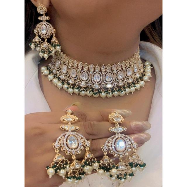 ชุดสร้อยคอเพชรโมอิสพร้อมต่างหูสำหรับงานแต่งงาน