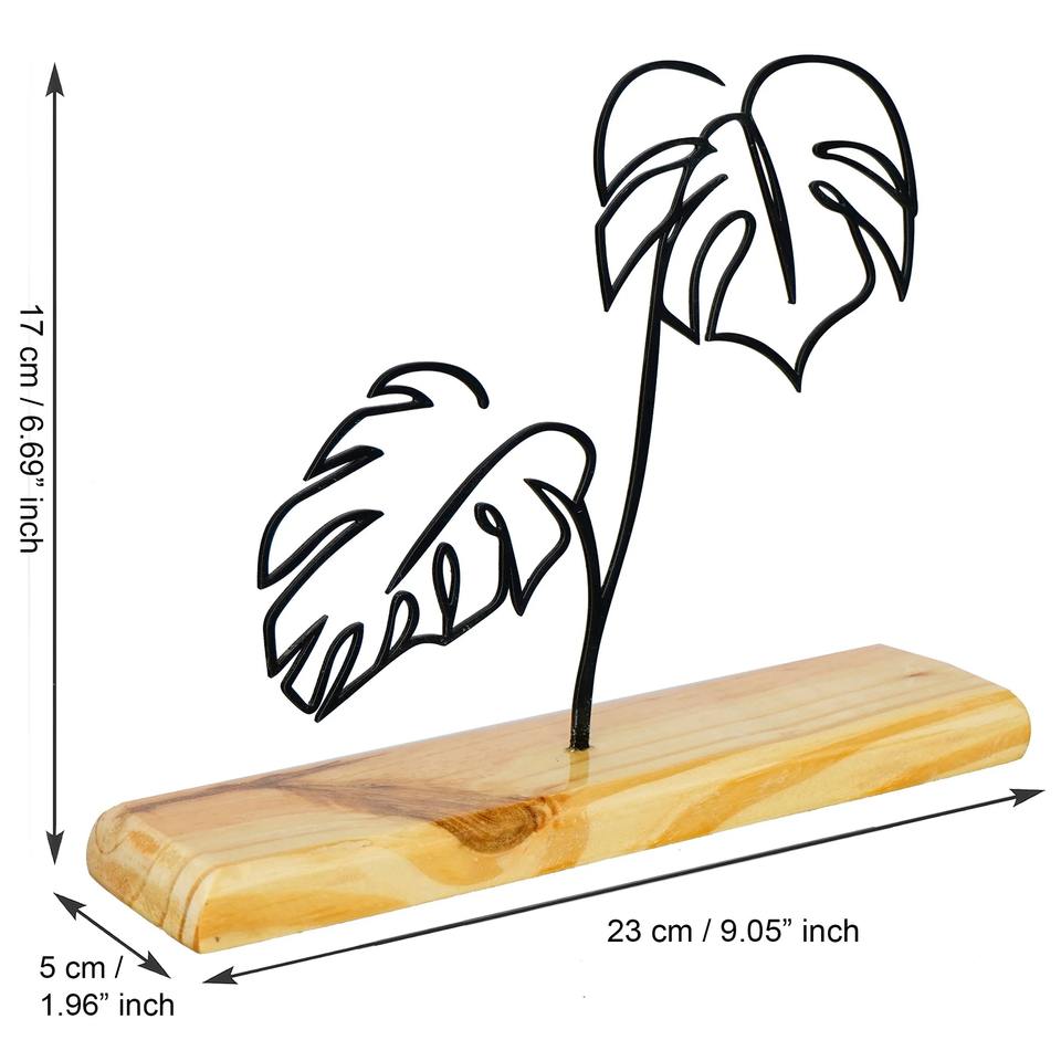 รูปปั้นใบไม้โลหะสีดำดีไซน์เนอร์บนฐานไม้หรูหราเน้นโต๊ะเพิ่มความเก๋ไก๋แบบออร์แกนิกให้กับทุกห้อง