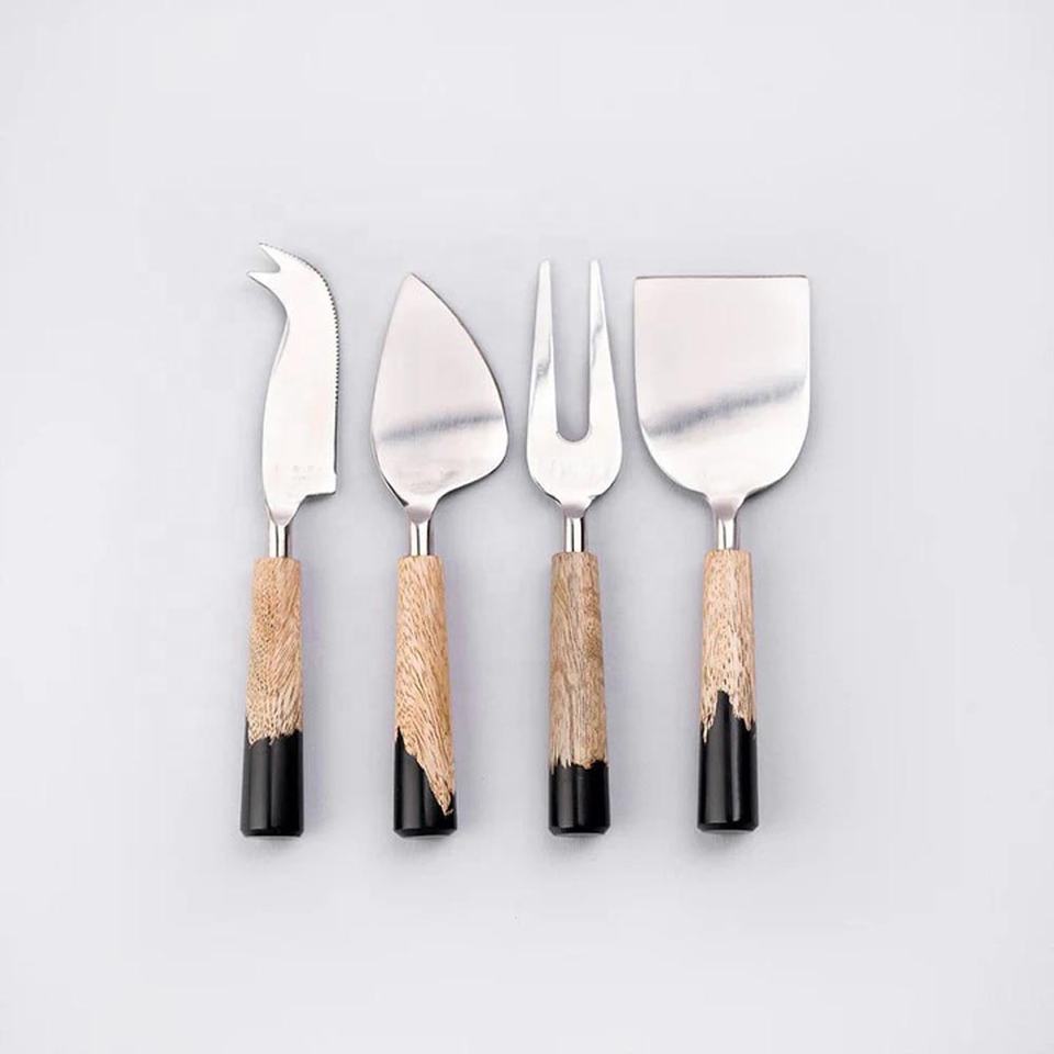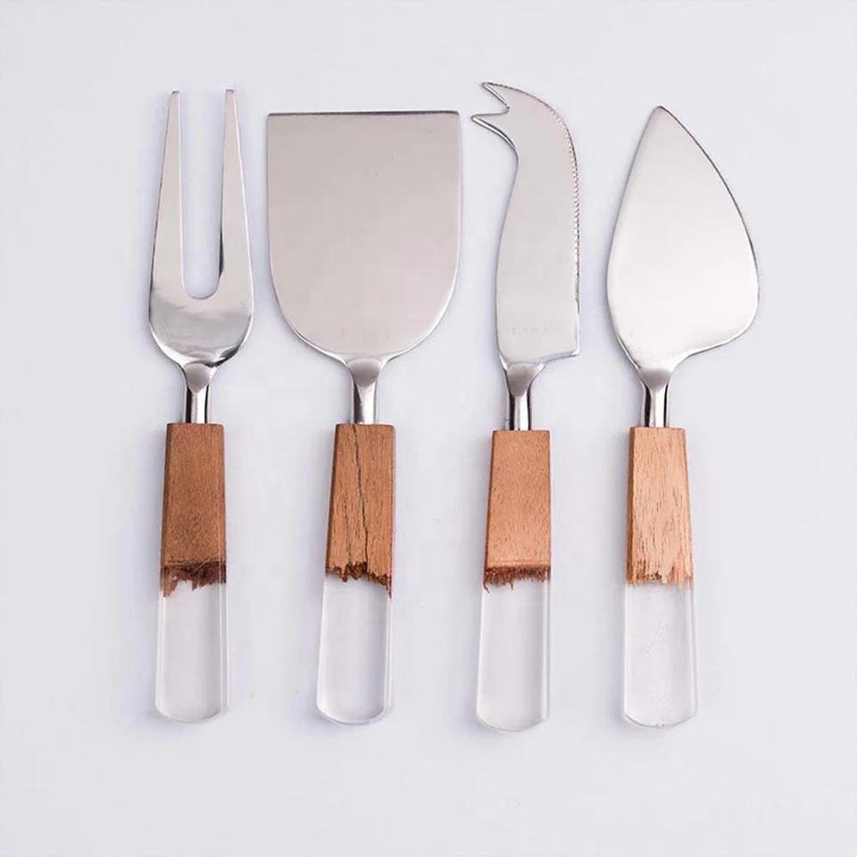 ชุดเครื่องมือตัดชีสขัดเงากระจกสี่เหลี่ยมมือจับเรซินสีเทา,สีน้ำเงินดีไซน์เนอร์พร้อมด้ามสีขาวสำหรับโต๊ะ