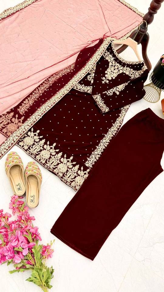 ชุดสัลวาร์ คามีซ ผ้ากำมะหยี่ ดีไซน์แบบบอลลีวูด สำหรับงานแต่งงานและงานปาร์ตี้ของอินเดียและปากีสถาน สำหรับเด็กผู้หญิง แห้งเร็ว ยืดหยุ่นได้