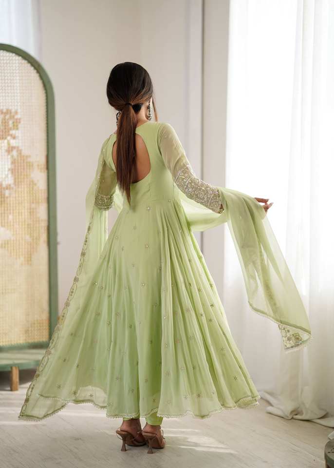 ชุดอนารกาลีสไตล์บอลลีวูดสำหรับนักออกแบบ - ประดับด้วยเลื่อมสีรุ้งและรายละเอียดมุก