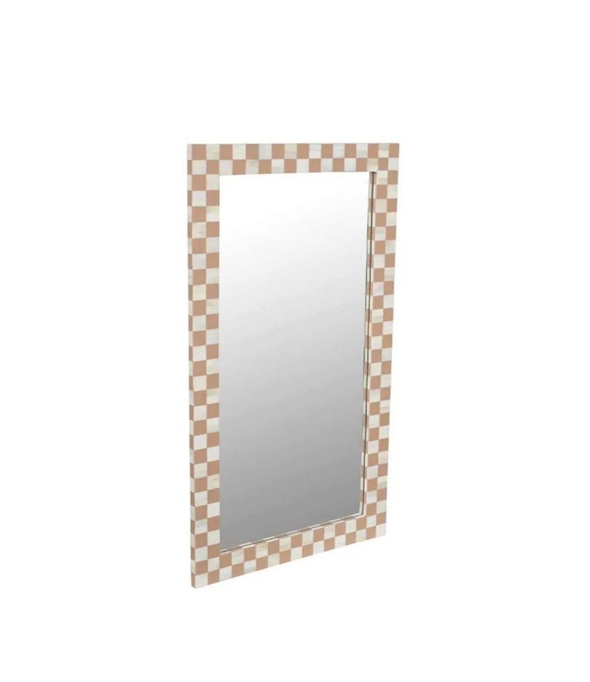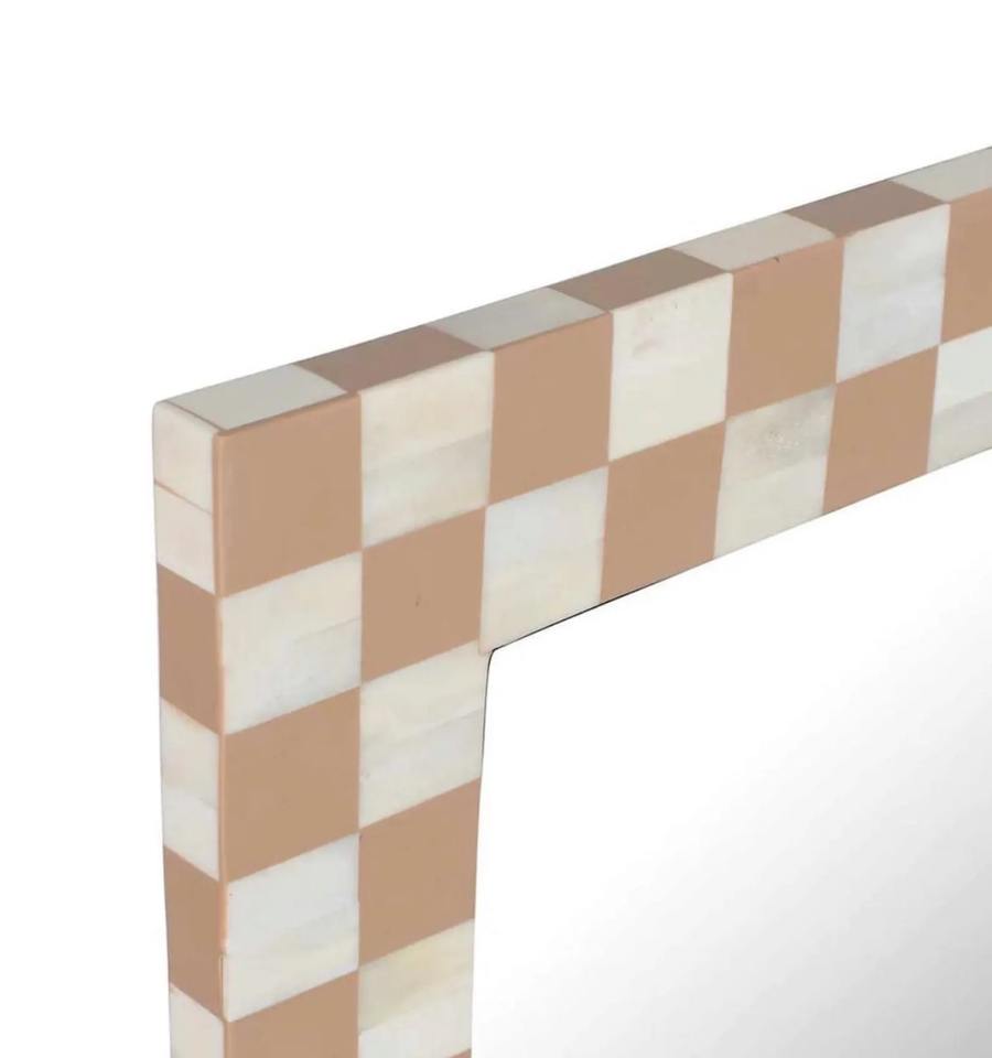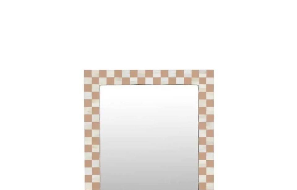 กระจกเงาติดผนังแบบฝังกระดูกกรอบกล่องตกแต่งสีน้ำตาลและสีขาวสำหรับการตกแต่งภายในที่หรูหรา
