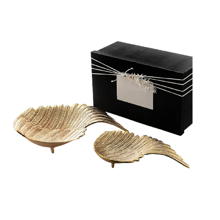 ชุดชามเสิร์ฟทองเหลืองดีไซน์สวยงาม รูปทรงใบไม้ ขนาด 2 แบบ สำหรับเสิร์ฟผลไม้อบแห้ง