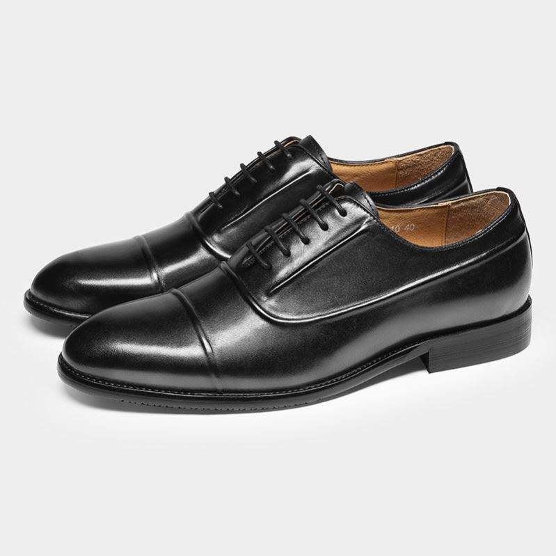 รองเท้าธุรกิจดีไซน์เนอร์ ทำมือสำหรับผู้ชาย หัวแหลม หนังแท้ VALENTINA แบบผูกเชือก ตกแต่งลายปะติด พื้นยาง