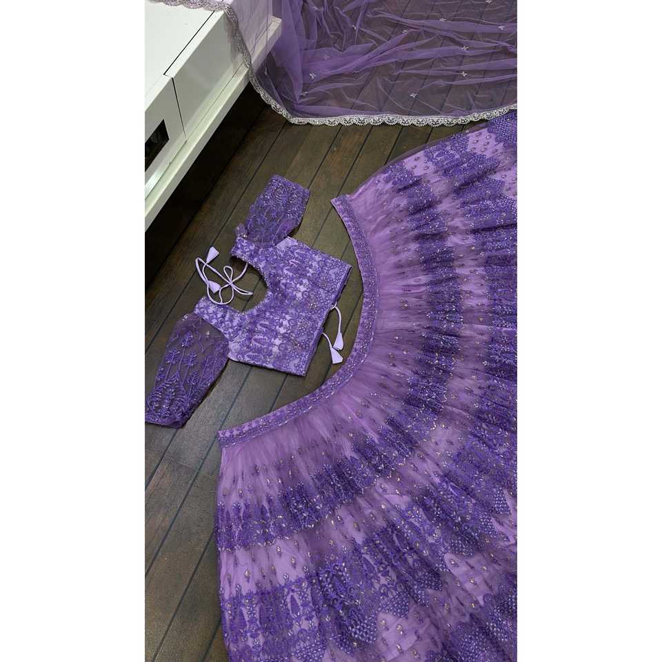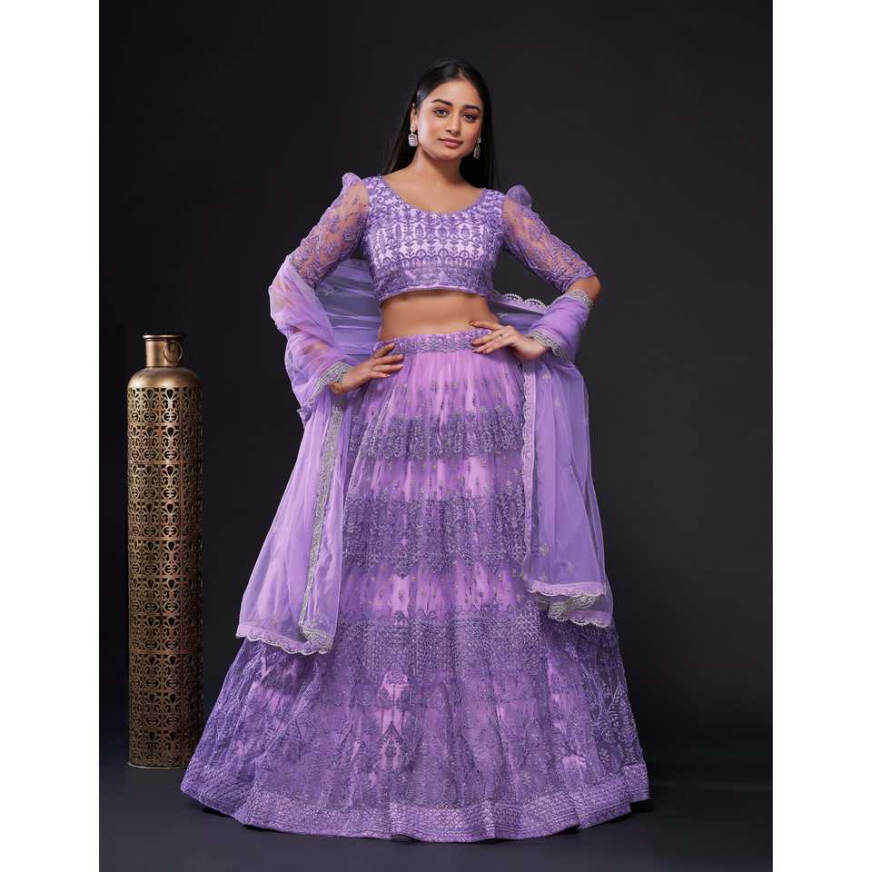 ชุดเลเฮนกาโชลีผ้าชีฟองสำหรับงานปาร์ตี้ เสื้อแขนสามส่วนประดับด้วยงานปักเลื่อม