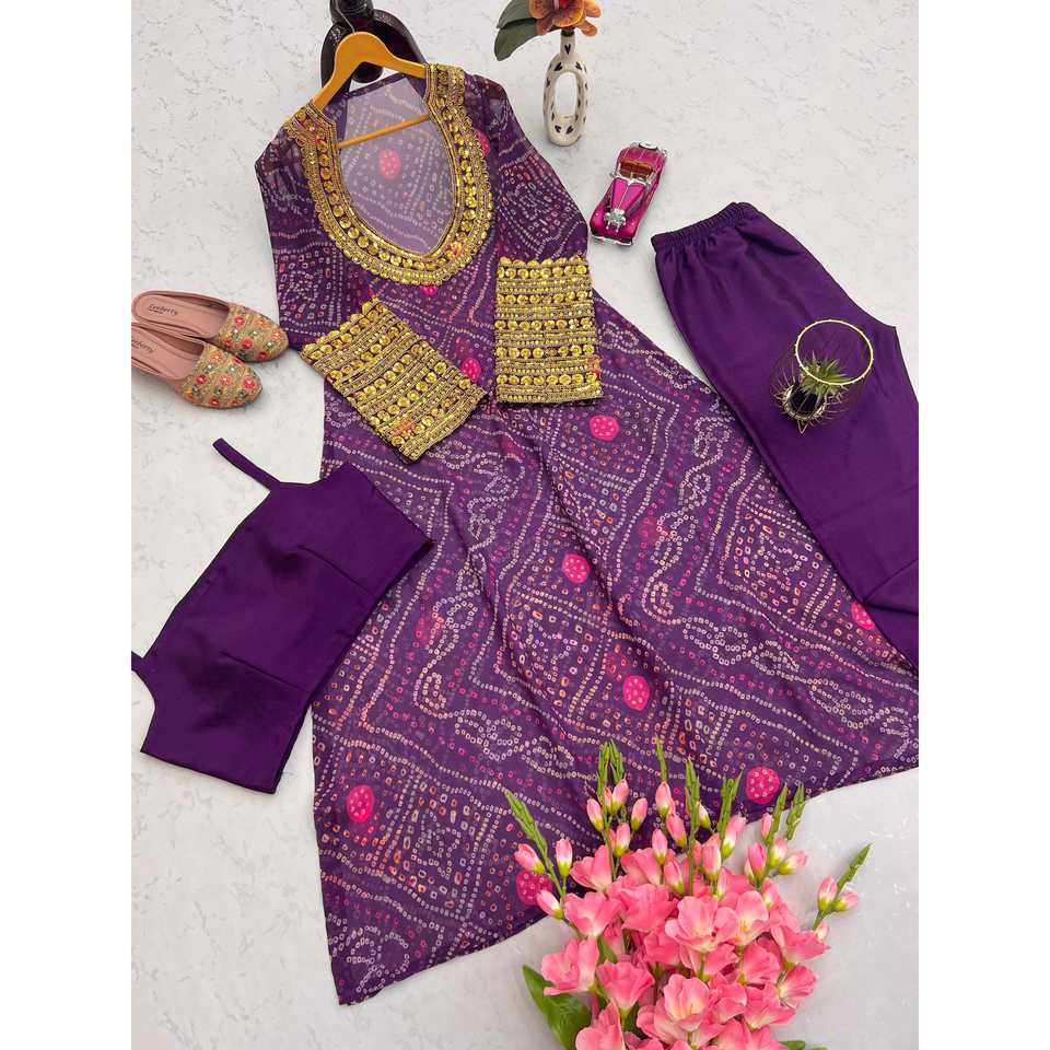 Designer Chiffon Party Wear Suit Set with Digital Prints Elegant and Stylish