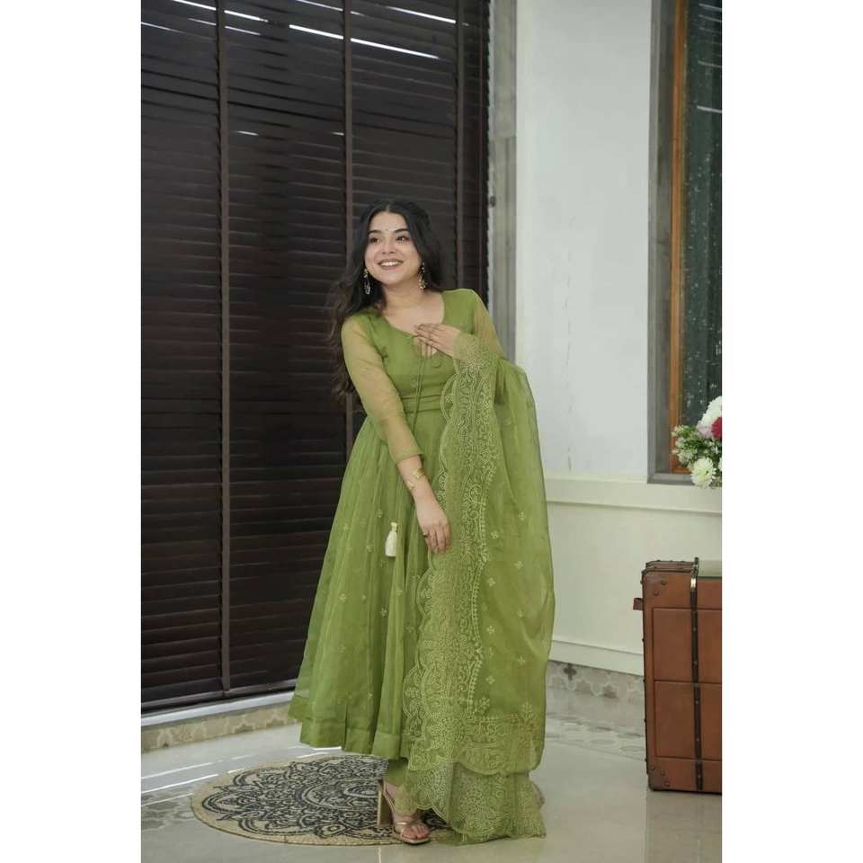 เสื้อชีฟองดีไซน์เนอร์พร้อมกางเกงและผ้าคลุมไหล่ปักลาย สำหรับงานปาร์ตี้สุดหรู แขนยาวสามส่วน