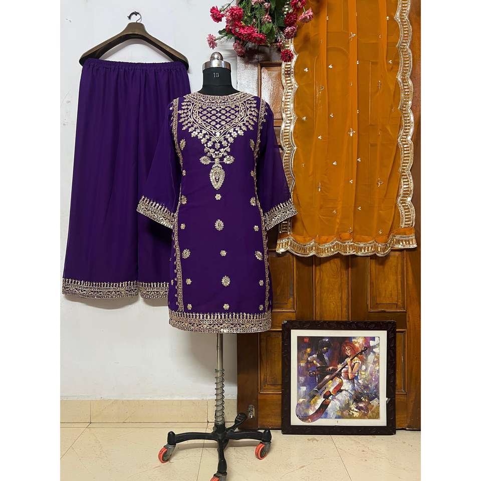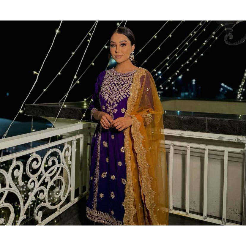 เสื้อชีฟองดีไซน์เนอร์พร้อมกางเกงและผ้าคลุมไหล่สำหรับงานปาร์ตี้ แขนยาวสามส่วน