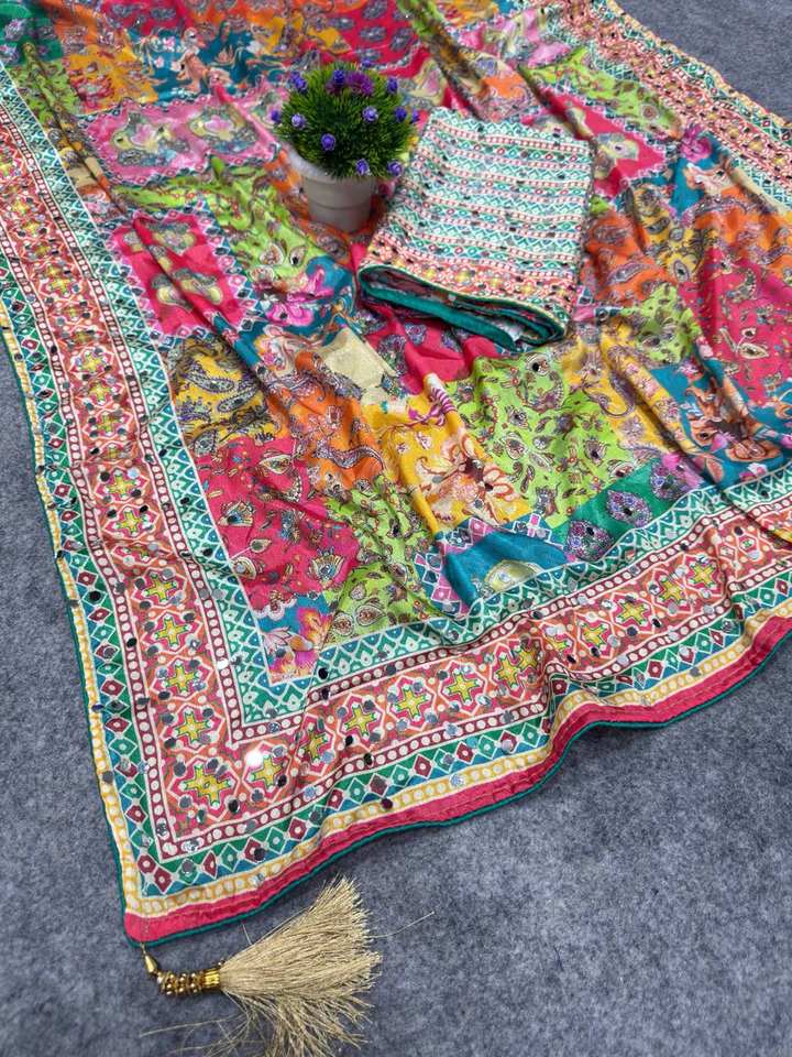 ผ้าไหมชินอนดีไซน์เนอร์ พร้อมขอบปักลาย ลาตคาน พู่ห้อย และงานกระจกแท้ แบบกลับด้านได้ ความยาวระดับข้อเท้า สไตล์งานปาร์ตี้
