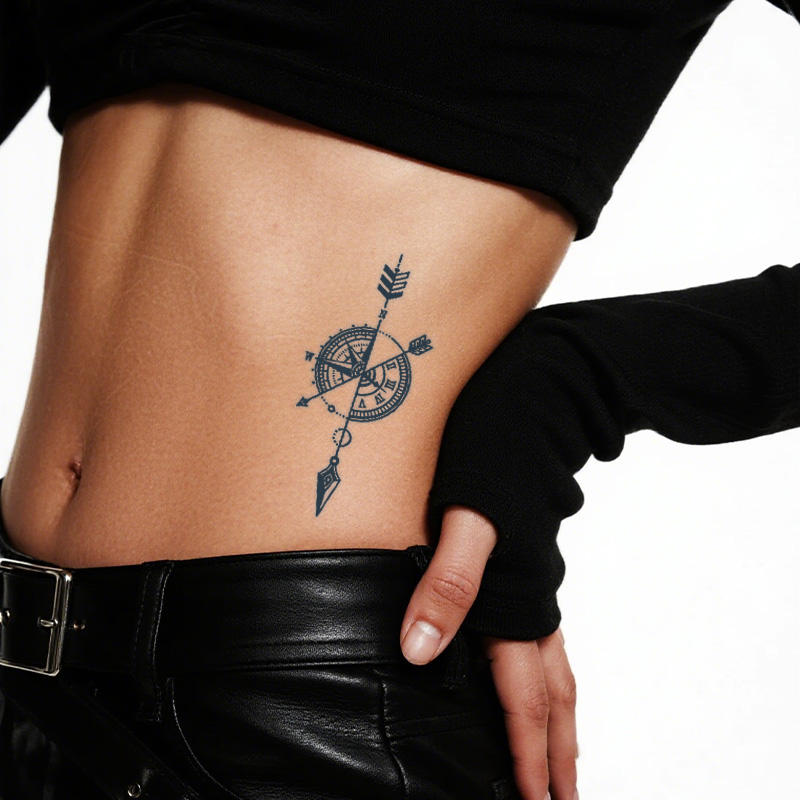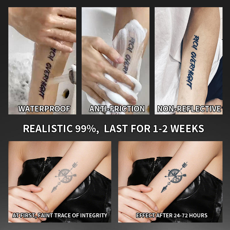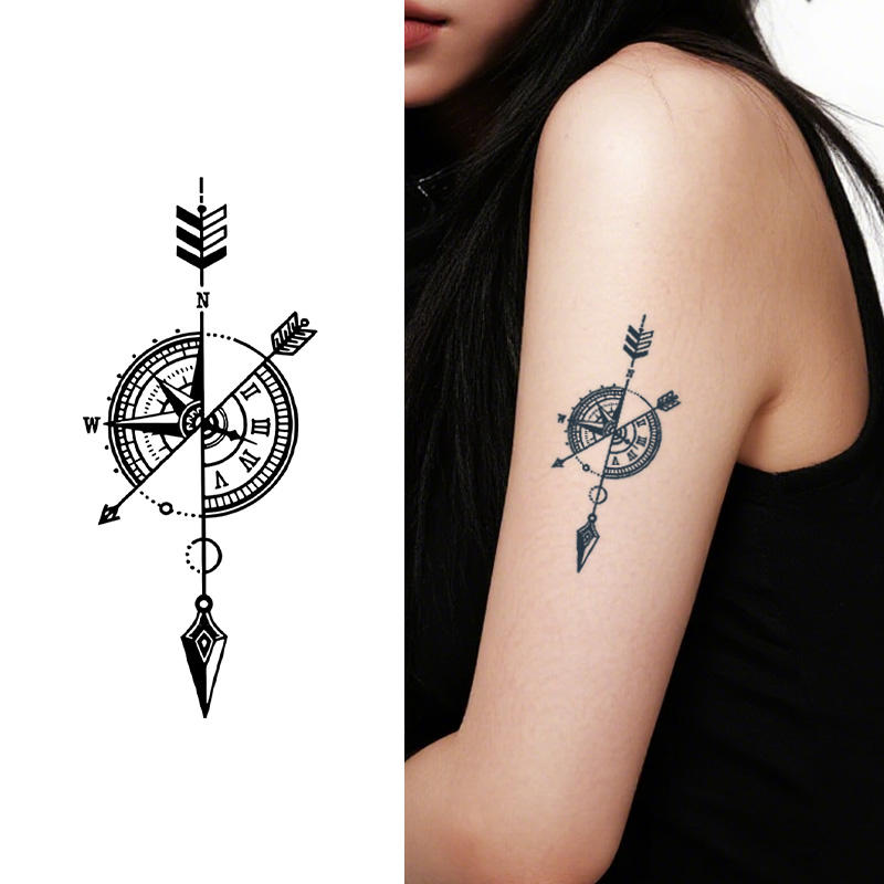 รอยสักชั่วคราวลายเข็มทิศดีไซเนอร์ รอยสักกึ่งถาวร กันน้ำ กันเหงื่อ ติดทนนาน 2 สัปดาห์ รอยสักเหมือนจริงสำหรับแขนและลำตัว